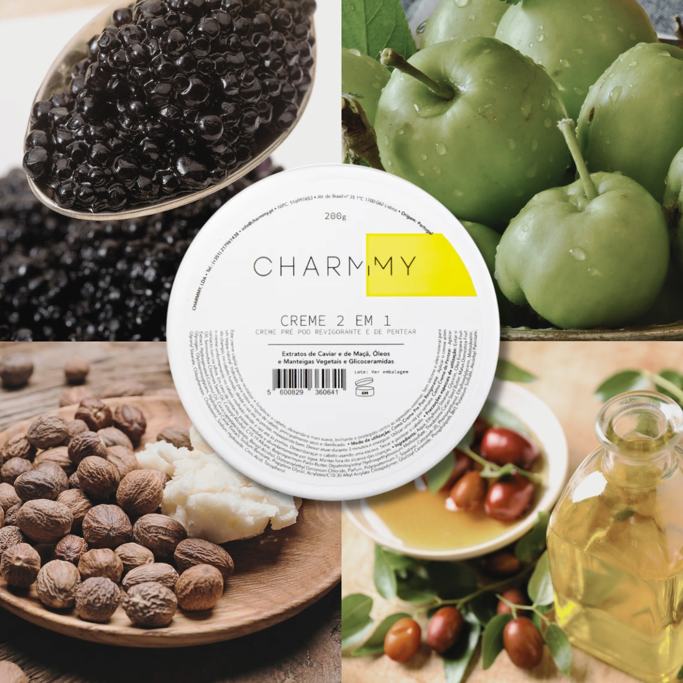 O creme 2 em 1 da Charmmy, é um tratamento intensivo para quem procura qualidade excepcional nos cuidados capilares. Concebido para funcionar como um pré-poo ou como creme de pentear. Desenvolvido especialmente para os cabelos secos, danificados ou com tendencia ao frizz.