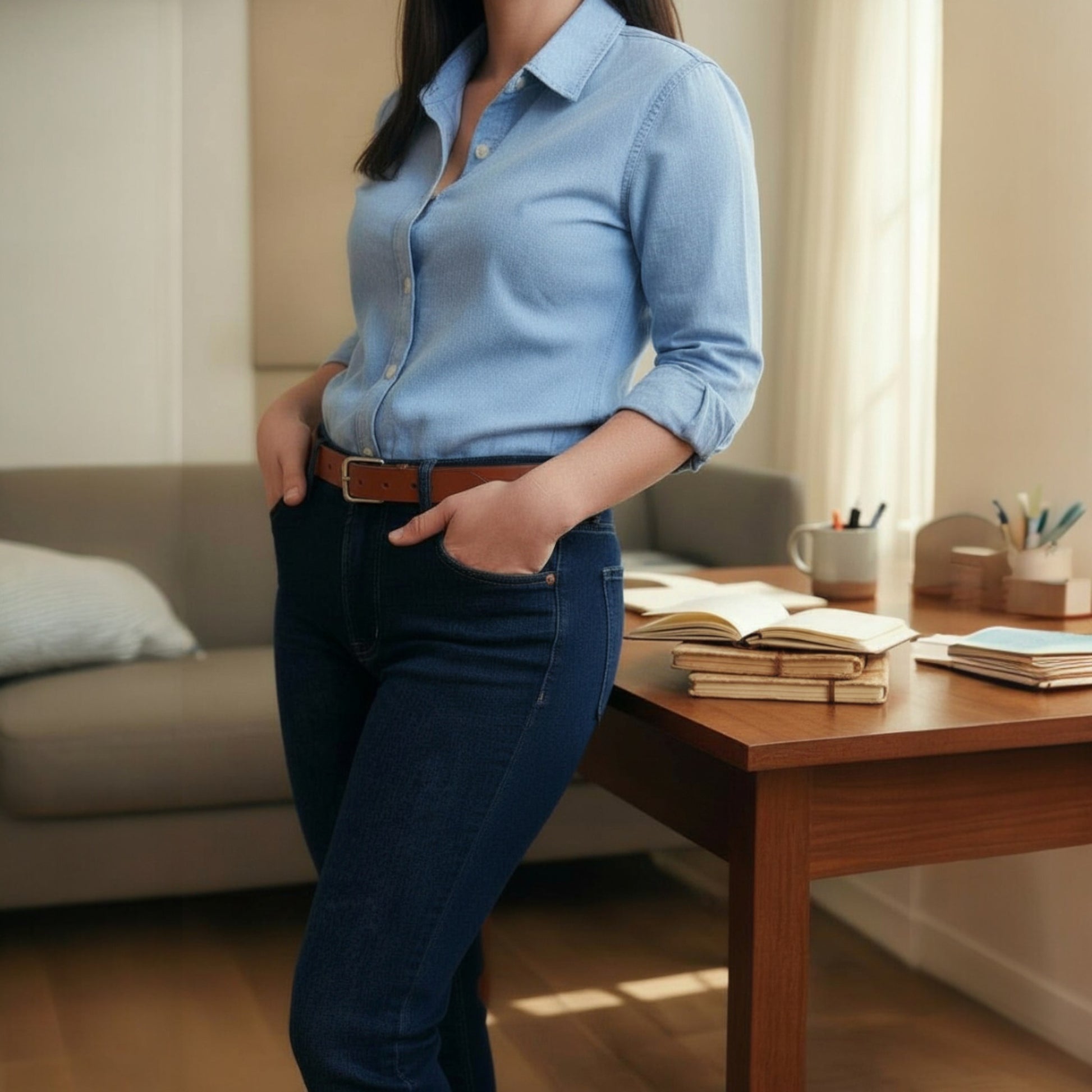 Clássico e versátil, este cinto em pele genuína de cor natural é um essencial no guarda-roupa de qualquer mulher. Com acabamento polido e uma fivela metálica prateada de design intemporal, combina com tudo — desde jeans a peças mais formais.